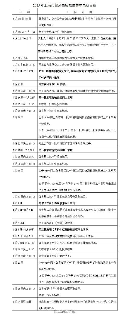 6月25日9:00至16:00,考生可以通過登錄“上海招考熱線”(www.shmeea.edu.cn、www.shmeea.com.cn)申請成績復核。本市招生錄取工作將于6月底起正式拉開序幕。