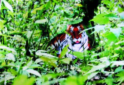 這是周正龍用數(shù)碼相機拍攝的第一張野生華南虎照片,也是10月12日陜西省林業(yè)廳在新聞發(fā)布會上提供給媒體的“虎照”(局部裁剪圖)