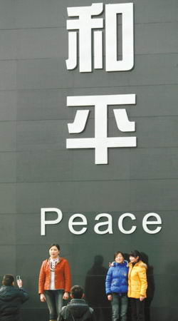 昨日,南京大屠殺紀念館,參觀者拍照留念。劉莉 攝