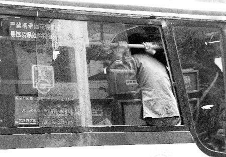 昨日,紅旗河溝公交車站,202路公交車售票員好不容易才擠進車廂