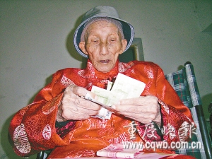 百歲老人三大愛:數錢 搓麻 喝小酒(圖)