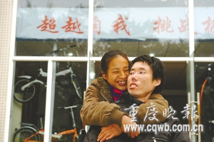 “我們有了第二家加盟店,你站起來的夢不再遙不可及!”拿著剛簽的黔江店加盟合同,站著和輪椅上的老公差不多高的蔣小燕,緊緊摟著韋良君的脖子撒嬌。
