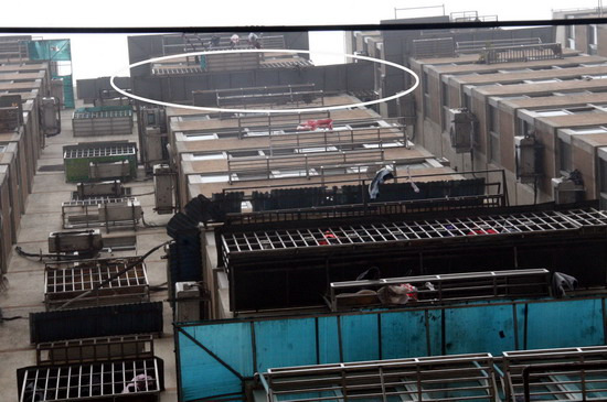 男子就是從畫圈處的16陽臺跳下,下面的高壓電線救了他一命。王豐/人民圖片