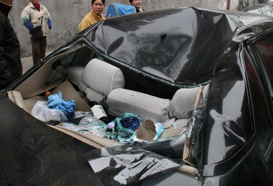 據(jù)揚子晚報報道 前天上午,一男子從南京南湖莫愁大廈16樓跳下,落在一輛停著的轎車上,車被砸壞了,人卻奇跡般地活著。據(jù)分析,是空中的電線和車頂救了男子一命。