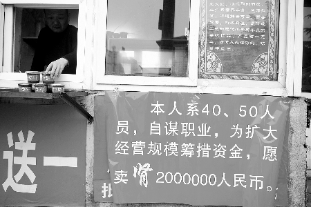 店老板打出的賣腎籌資廣告 商報記者 王春勝/攝