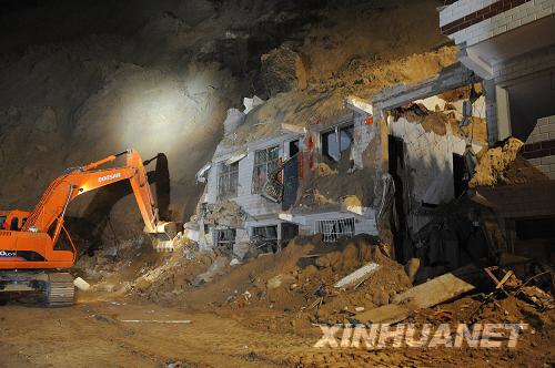 3月10日晚,救援人員在全力營救。 新華社記者陶明攝