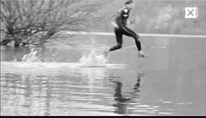 網上文章稱:“3名外國小伙在一個視頻里把中國武俠小說里的輕功 ‘水上漂’展現得淋漓盡致。視頻中,他們在葡萄牙一個湖上賽跑,在水面上奔跑了50多米后才落水。他們聲稱這是一種挑戰地心引力理論的新型極限運動。視頻上傳到某網站后,在短短兩周內吸引了超過200多萬人次瀏覽。視頻看起來可信度極高,不少質疑它是騙局的網友也不得不承認,它拍得很高明。”