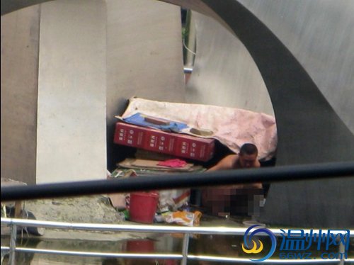 網(wǎng)友羅山老翁發(fā)在溫網(wǎng)論壇的帖子《龍灣甌江明珠塔上住著裸體男》,附有大量照片,照片顯示有一男子全身裸露,在甌江明珠塔塔基平臺上吃喝拉撒,城市的標志建筑儼然成為了這位流浪男子的“蝸居”。