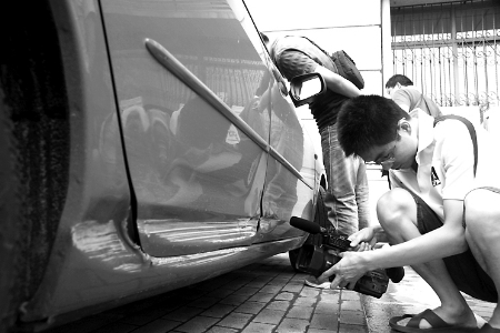 肇事車上留下的劃痕