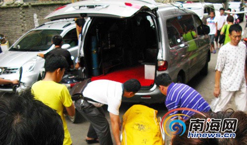 下午15點(diǎn)20分,死者被一輛車牌為瓊AOCP2x的面包車?yán)撸幻麌^市民氣憤地說:“120怎能與拉尸者勾結(jié)在一起騙人,真是喪盡天良。”