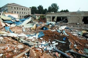 馮先生因房門被震得變形,無法打開,從暴露的房頂爬出。一位從家里匆忙跑出的男子,光著膀子,鎖骨處已扎入一塊碎玻璃,渾身淌著血,只穿一條內褲,向其他村民求助:“幫我去屋里拿條褲子”。
