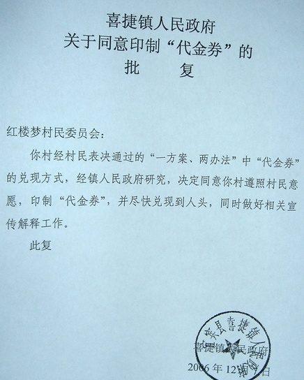 村民手中的代金券