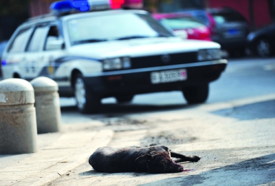 鼓樓特巡警向指揮中心匯報稱,在南京江東北路與鳳凰西街附近,發現一只已經被打死的黑狗,據當事人稱,黑狗剛剛在工地傷人時被幾名工人亂棒打死,現在正準備運走深埋,恰巧被特巡警遇到,就交由警方處理。根據被咬市民的描述,記者了解到,這條惡犬橫跨鼓樓、建鄴兩區,東到清涼門,西到江東門,流竄8條街道,從凌晨四點開始,最終在上午11點鐘左右被棒殺。而這之后就沒再接到瘋狗咬人的報警。
