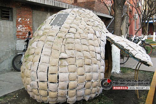 今年7月,面臨畢業(yè),戴海飛將想法告訴給了專業(yè)老師湯斗斗。湯老師很支持:一個建筑學專業(yè)的應屆生,靠自己動手解決住房問題,想法不錯。于是,他從工作室調配了幾名學生,幫戴海飛一起造蛋。至于這顆蛋怎樣造,會造成什么樣子,湯老師沒有介入,當時,他去了西藏。