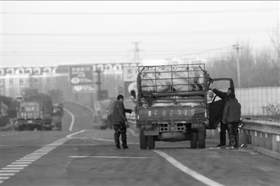 一周前,有讀者致電本報稱,“連續(xù)兩天的下午3點多,看到滿載生豬的大貨車停靠在位于東六環(huán)施園北橋下的高速公路應急車道上,運送人員給生豬注水,希望記者能夠關注”。