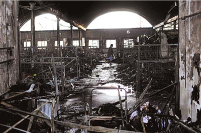 菜市場內被燒得一片狼藉。本報記者朱嘉磊攝