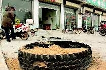 現場的陳老漢說,9點40分許,他突然看到一輛輪胎冒煙的大貨車由北向南駛來,司機一剎車,一聲巨響的同時,燃燒著的車胎瞬間飛了出去,砸在墻上又彈回來,一個20斤重變了形的鋼圈飛進王麗店里。