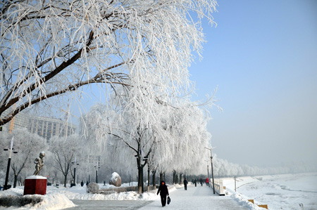 12月20日在牡丹江江濱公園拍攝的霧凇美景。新華社發(fā)(田成明攝)