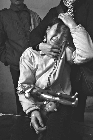 28日,墜河事故中遇難的王磊的母親悲痛不已。郭國權(quán) 攝