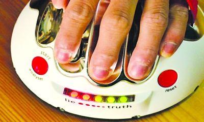 2、儀器上有5個燈,根據被測試人的回答燈會亮,如果標示“lie”(撒謊)的燈都亮了,被測試人將遭電擊。反之標示“truth”(真實)的燈亮的話,被測試人就平安過關。
