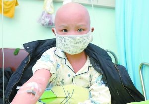 昨日下午,重醫(yī)附屬兒童醫(yī)院血液科一間病房內(nèi),傳出一陣歡笑聲,幾個活潑的卡通人物在DV播放機(jī)熒屏中又唱又跳。可它們的歡樂顯然沒有傳遞給坐在13床病床上的8歲白血病患兒趙鵬。這個輸著化療藥物的小男孩那無神的雙眼始終沒有離開過電視,蒼白的小臉上沒有一絲笑容和快樂,寫滿了平靜和深沉,仿佛心思根本沒有放在小朋友們通常都喜愛的卡通片上。