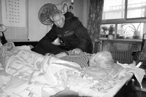“照顧病人還要細(xì)心,病人最怕長(zhǎng)褥瘡,一旦長(zhǎng)了褥瘡,傷口潰爛難愈,極易感染。平躺一會(huì)兒,側(cè)著躺,三面倒,看哪面皮膚發(fā)紅,就少躺一會(huì)兒。夏天,胯骨部位還要經(jīng)常用酒精消炎,平均倆小時(shí)給她翻一次身……”多年的護(hù)理經(jīng)歷,讓劉俊明成了“專家”。讓他欣慰的是,十幾年來(lái)老伴沒(méi)有長(zhǎng)過(guò)一個(gè)褥瘡,也沒(méi)有感冒過(guò)一次。