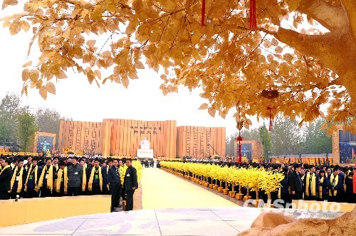 資料圖:2010年4月16日(農歷三月初三),庚寅年黃帝故里拜祖大典在河南新鄭市舉行。當日,來自海內外的兩萬多名嘉賓歡聚于此,共拜軒轅。 中新社發 劉書亭 攝