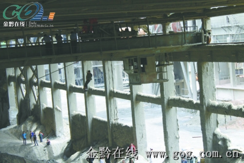 悲劇發生在當天下午1點30分左右,事發點位于原貴州水泥廠的一個生產車間內。貴陽市南明區菊花洞路消防中隊接到報警后,隨即趕到了事發現場。經偵查發現,受傷男子被困在車間半空中鋪設的航車軌道上,距離地面近15米高。男子右腳已經血肉模糊,無法站立起來,正在痛苦地呻吟。