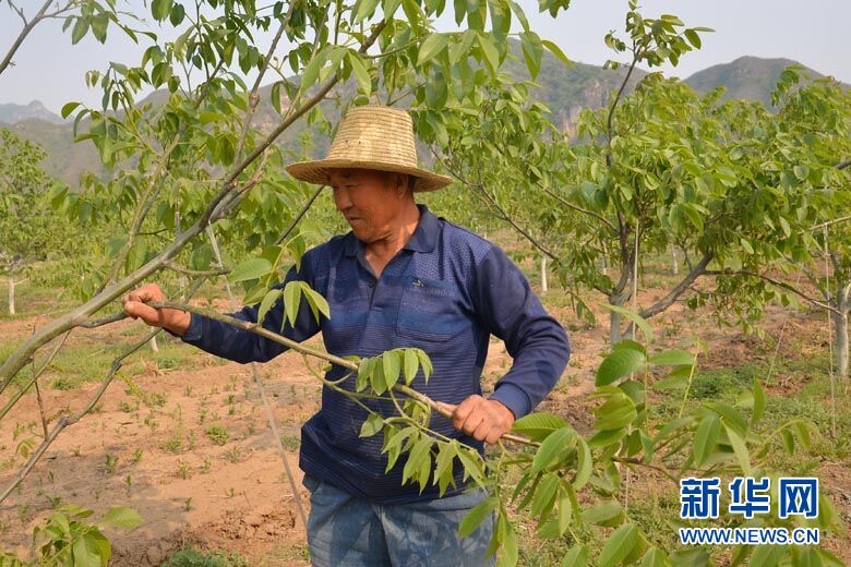 易縣田崗村村民于紀元在為合作社的核桃樹拉枝 新華網 魏會博 攝
