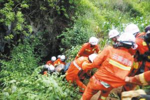 被困的4名采石者因深入溶洞采集鐘乳石時,使用液化氣和空氣壓縮機導致一氧化碳中毒。救援官兵先將昏倒在洞內較淺位置的2名被困者救出,再佩戴空氣呼吸器,帶上照明燈具和擔架,利用安全繩下到洞內搜尋被困人員。下午4點25分,在洞深150多米處搜尋到1名被困人員,消防隊員將其送上洞口。在距上一名被困者不遠的開鑿處成功發現第4名被困者,并于下午6點50分,將其安全救出。