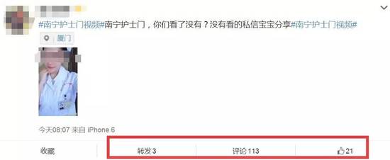 在微博搜索“南寧護士門視頻”,結果發現好奇的人還不少。但也有機智的網友發現,這一切都是套路,有老司機費盡千辛萬苦找來三段視頻。卻發現,視頻中出現的場景,是幾段穿著下圖制服的淫穢視頻,跟網上流傳的圖片根本不沾邊。經過老司機帶路,網上流傳的這組照片,其實是某某色情網站的帖子。看到了嗎~人家只是圖片,并不是視頻。