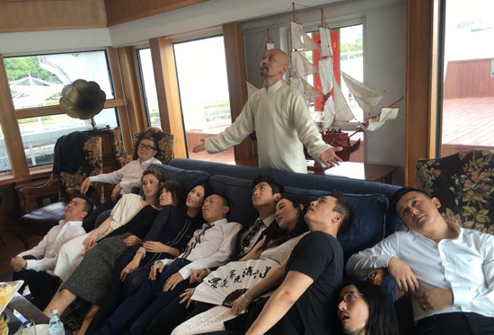 18日下午,霍思燕微博曬出兩張劇組人員同玩“葛優癱”的照片,場面十分壯觀。現場,葛優站在全員身后伸開雙手,架勢極似“葛優培訓班”的老師,其他人則癱在沙發上,手指鏡頭齊擺姿。