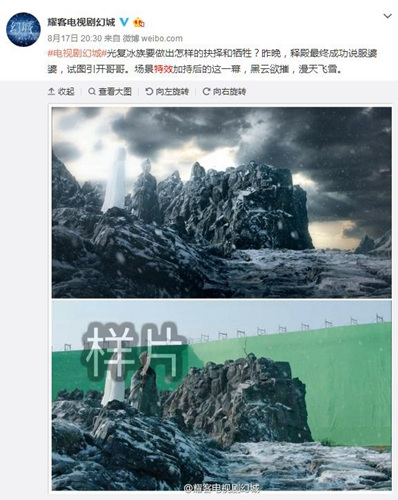 資料圖:《幻城》特效制作前后對比圖。(《幻城》官方微博截圖)