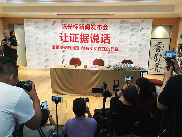 原標(biāo)題:陳光標(biāo)南京發(fā)布會(huì)回應(yīng)詐捐