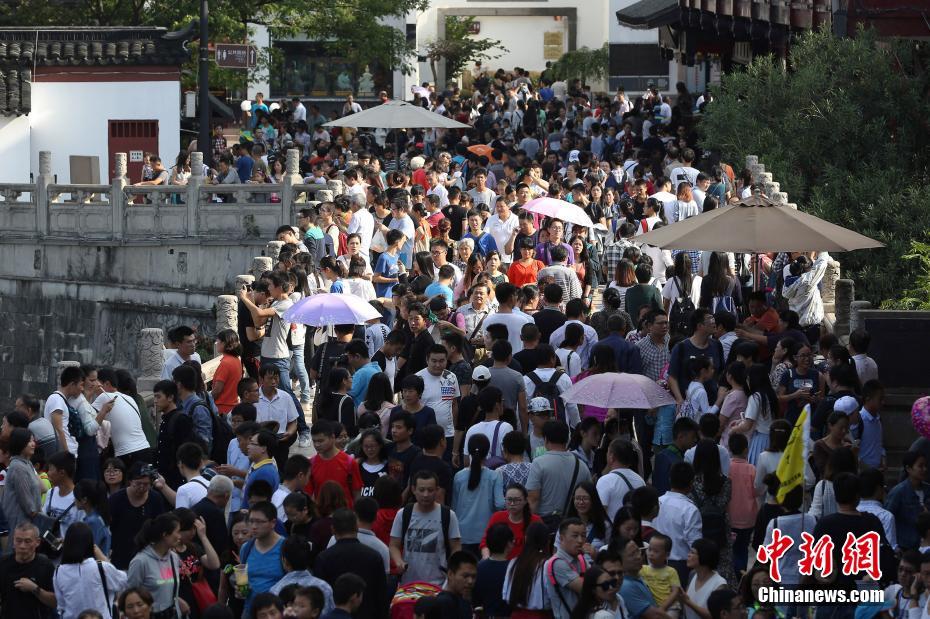 10月4日,中國國家旅游局發布的信息顯示,2016年國慶假期過半,經綜合測算,前四天全國共接待游客4.15億人次,同比增長13.8%,累計旅游收入3397.5億元,同比增長15.1%。圖為10月3日,游客們在南京夫子廟景區內游玩。 中新社記者 泱波 攝