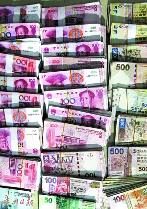 警方在東莞破獲一宗地下錢莊案時繳獲的涉案現金。