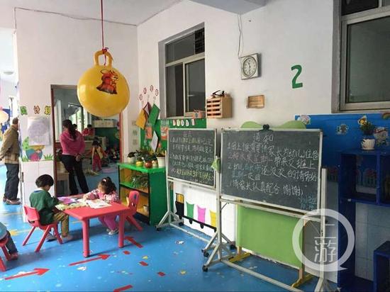 紅花崗區試驗幼兒園每個班級門口都擺放著小黑板,班主任把幼兒園的重要通知寫在上面,提醒家長注意。(受訪者供圖)