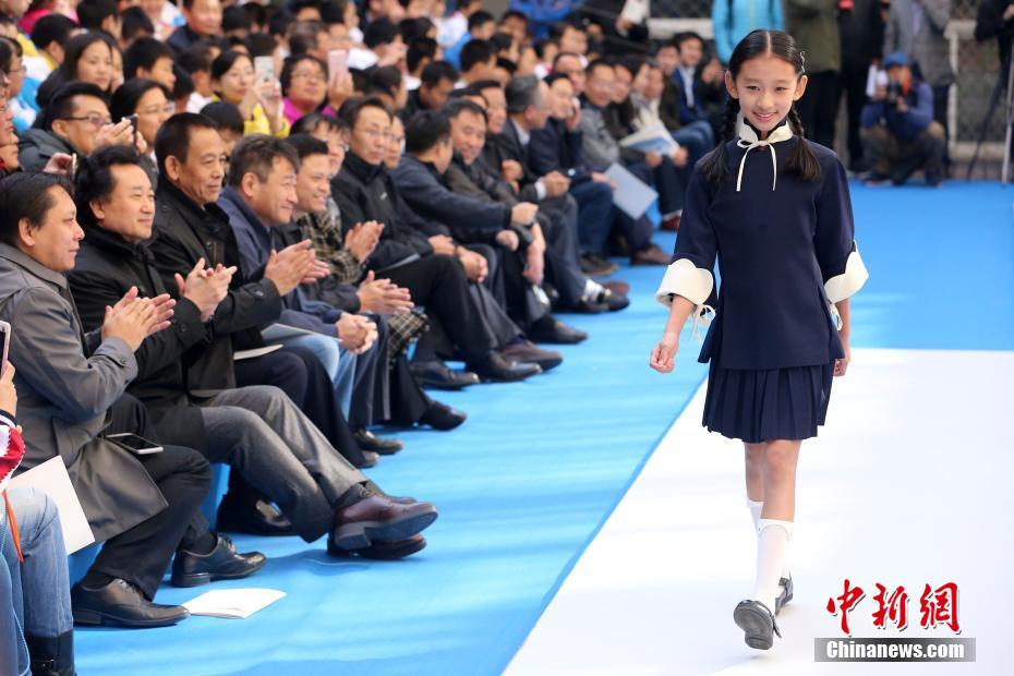 10月29日,以“繽紛校園”為主題的成果展在北京服裝學(xué)院舉行。60余名中小學(xué)生模特,身著多款新設(shè)計(jì)的校服,邁著“貓步”大方地依次登臺(tái)亮相,接受檢閱。 中新社記者 韓海丹 攝