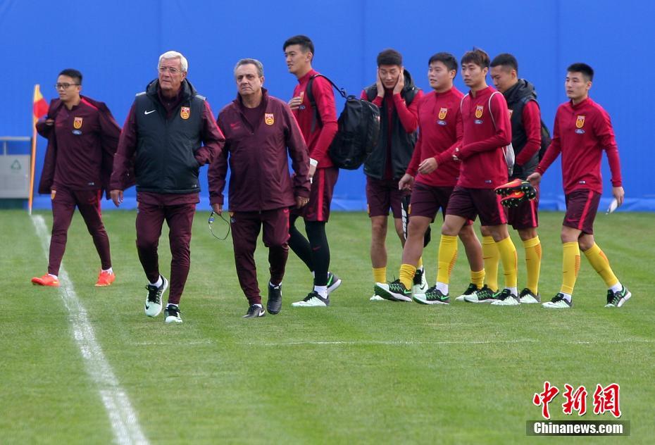 11月3日下午,里皮和他的團隊走進集訓現場。當日,中國國家男子足球隊在新任主帥里皮的帶領下,在昆明海埂訓練基地進行首訓。 中新社記者 李進紅 攝