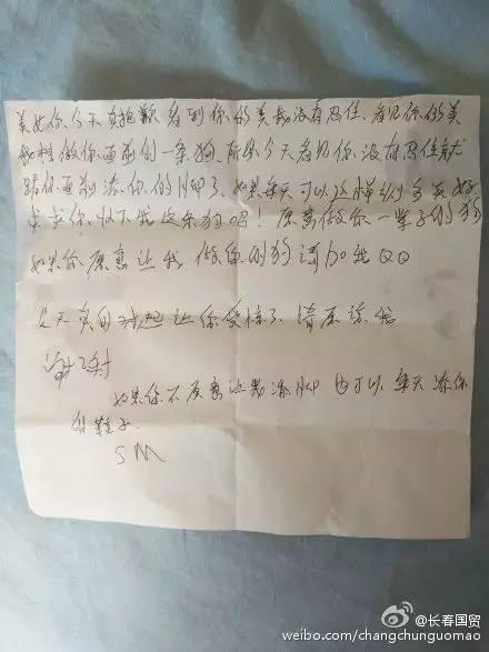 智女士一腳將男子踹開,向隔壁鄰居求救。男子見狀迅速逃離現場。十幾分鐘后,智女士穩定情緒下樓查看,竟看見了一張令她瞠目結舌的“道歉求愛書”:上邊寫,想做她的一條狗,舔鞋也行......