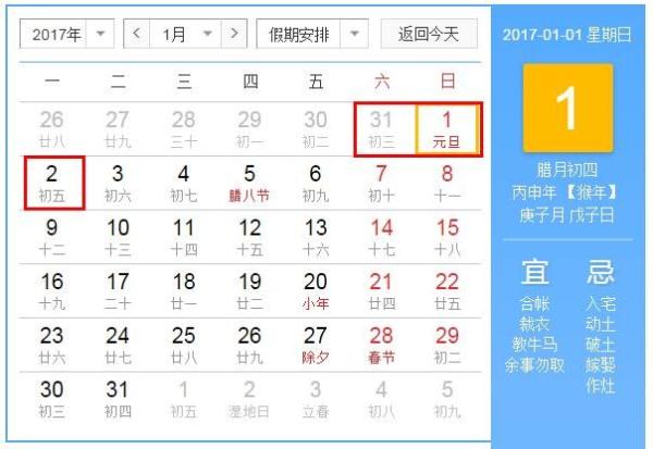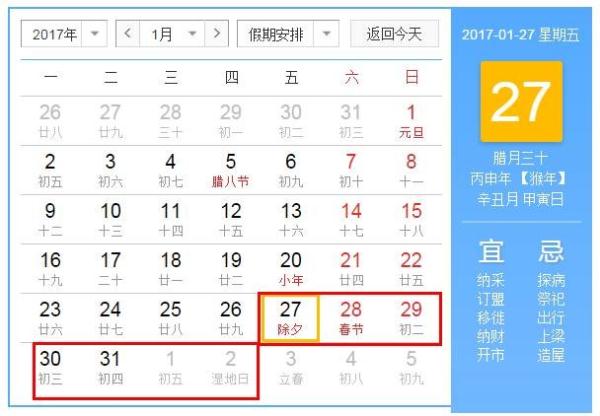 1月29日(星期日,農歷正月初二)為法定節假日。