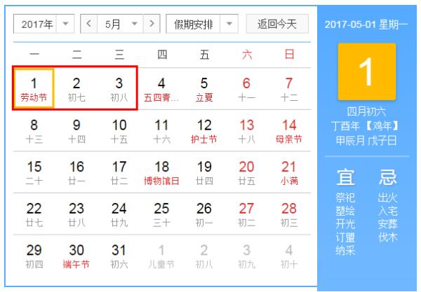 5月1日(星期一、“五一”國際勞動節)為法定節假日。