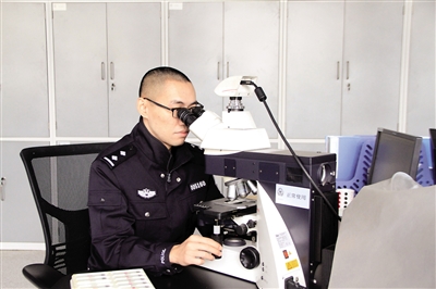 王昊在顯微鏡下閱片,對臟器的損傷和病變進行診斷。本報記者 平索茜 攝