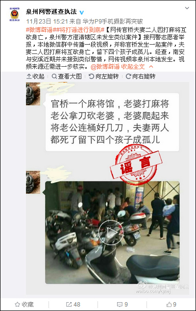 1、福建南安夫妻因打麻將互砍身亡?警方辟謠