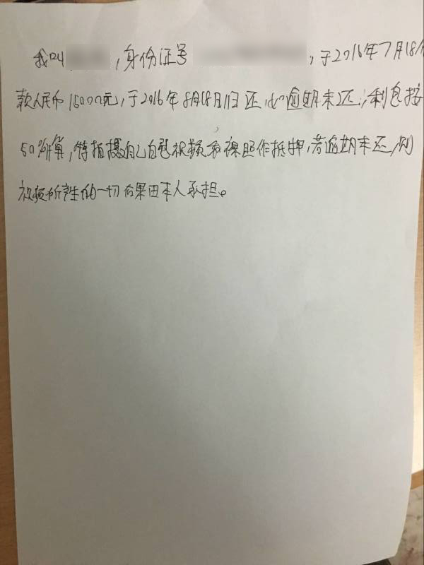 從借條本身來看,26人借款金額被泄露,最高的是2.3萬元,最低的是1000元,多數人的借款金額在2000元到6000元之間,這部分人占比38.5%。而從借款期限來看,被泄露的24條記錄中,最長的是9個月,最短的為5周。其中,5人借款期限為2周,5人為1個月,4人為1周。可以說大多數人都是短期應急借款。從利息來看,最高的為每周收取本金15%的利息,還有人2個月被收取本金100%的利息,遠遠高出年化24%以內的法律保護的民間借貸利率規定。
