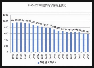 原料驢皮的短缺,是促使阿膠漲價的根本原因。根據國家畜牧統計年鑒顯示,毛驢存欄量已由上世紀90年代的1100萬頭下滑到500多萬頭,并且還在以每年超過3%的速度下降。