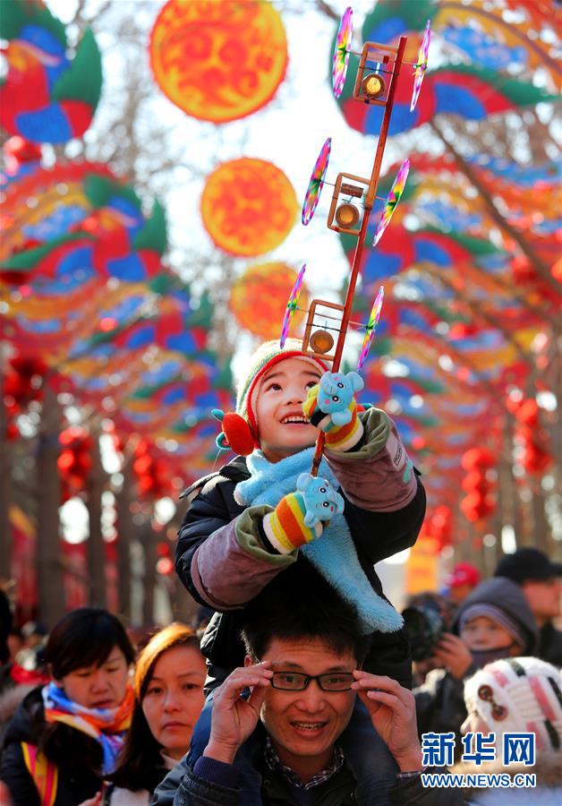 2月8日是農(nóng)歷大年初一,一名小朋友在北京第三十一屆地壇廟會(huì)上玩耍。新華社發(fā)(王希寶 攝)