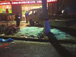 晚上9時,華商報記者趕到事發現場看到,涇陽縣公安局民警及涇干街辦工作人員正在勘察現場,傷者已被送往醫院。在水果店門口的道沿上可以看到,一輛白色小型卡車車頭向西停放著,卡車左側車廂圍欄已經打開,車輛下方是一大堆碎玻璃碴子。其中,玻璃碴子中間及路沿下方的馬路邊分別有兩攤血跡。
