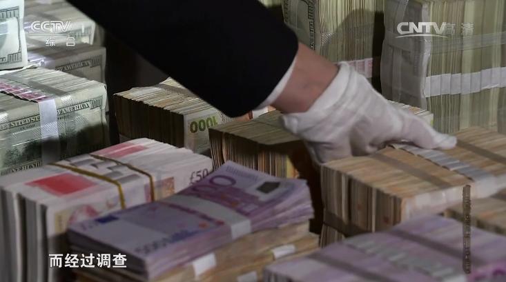 據專題片《打鐵還需自身硬》稱:向魏健輸送錢財最多的一名老板是四川商人宋志遠,金額達到上千萬元。圖為查獲贓款。