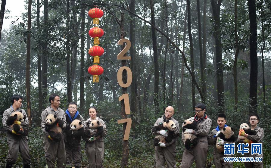 1月11日,中國大熊貓保護研究中心2016年出生的8只大熊貓寶寶集體亮相,為即將到來的新春佳節增添喜慶。
